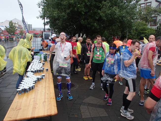 Lækjargata 12.37 Uhr Dann ging es ran die After-Race-Verpflegung. |