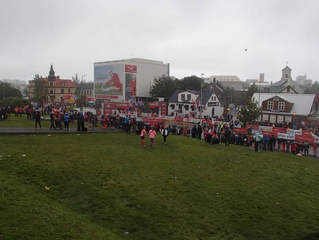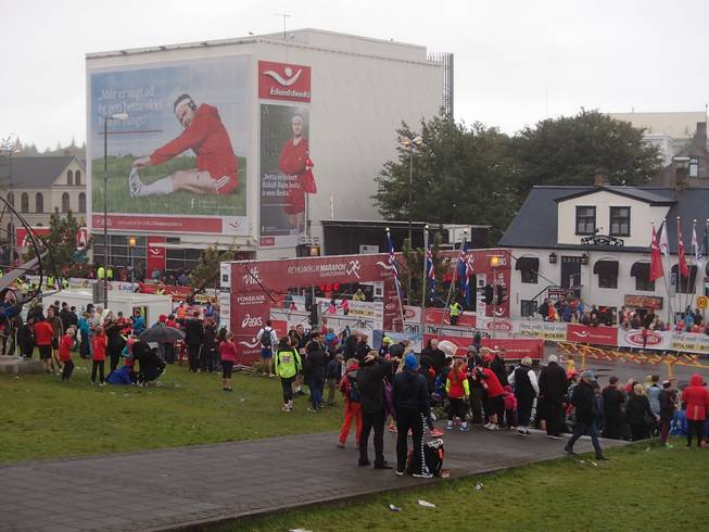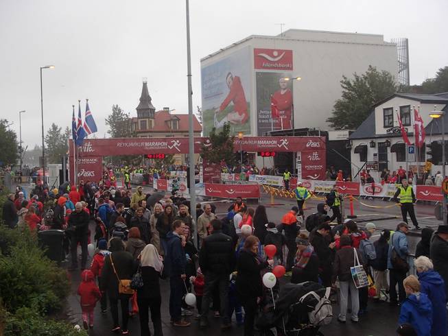 Lækjargata / Útitafliđ 12.50 Uhr Bis 14.40 Uhr würde das Ziel noch offen sein. Dann würden 851 Marathonies sich ihre Medaillen verdient haben. Ich erreichte Platz 371. |