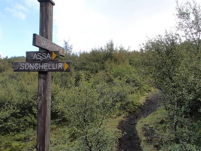 Húsadalur / þórsmörk Und kurz auf dem Schild orientiert. |