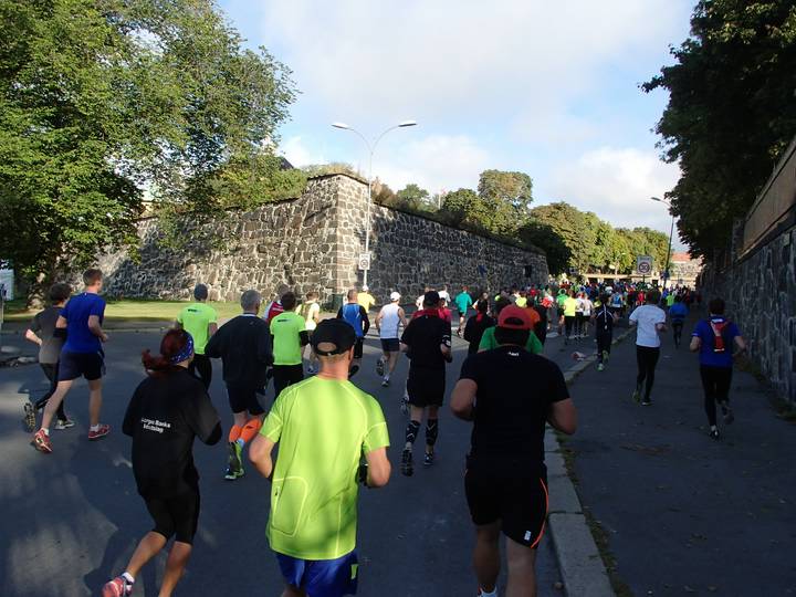 Kongens gate 9.49 Uhr / Km 1,2 Und schon war der erste Kilometer geschafft. Es ging nun auf der anderen Seite der Akershus Festning weiter. |