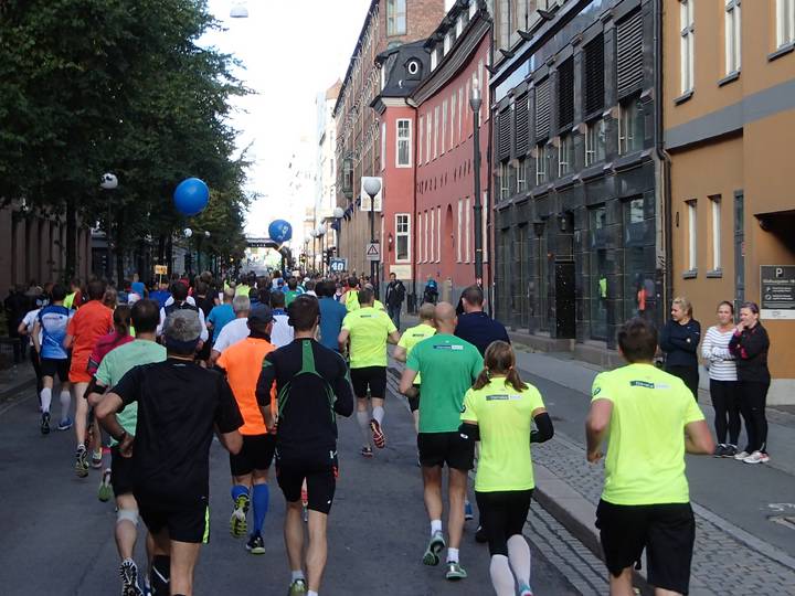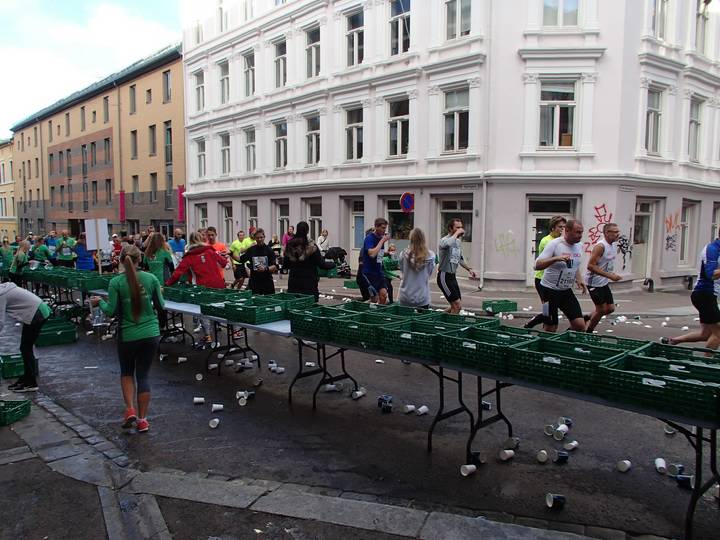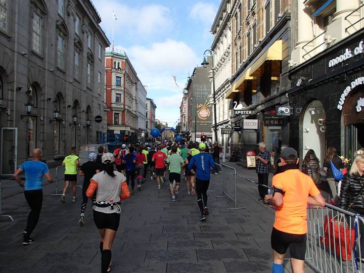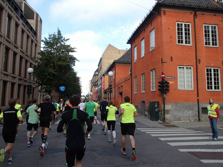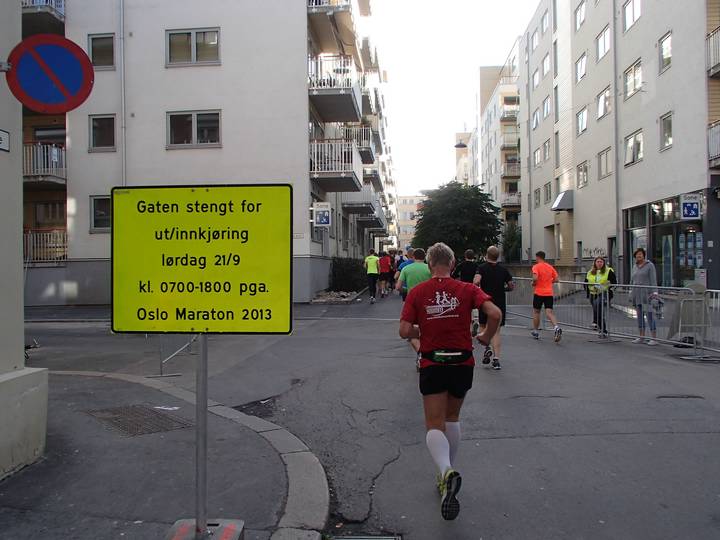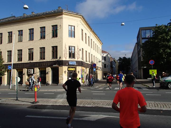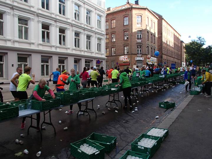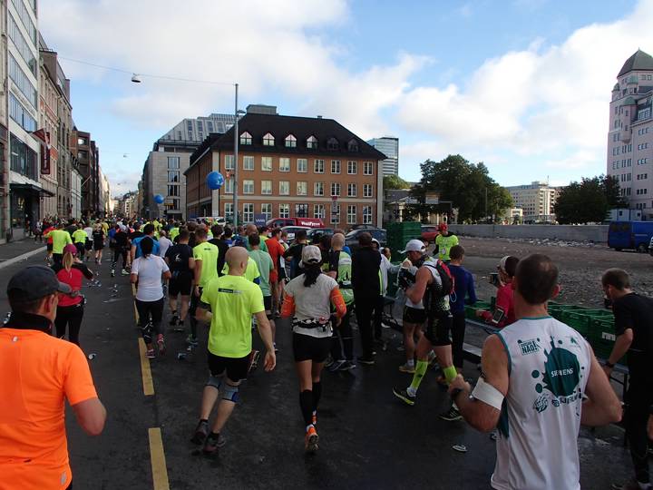 Tøyengata 10.10 Uhr / Km 5,1 Auf der Strecke gab es 13 Verpflegungsstellen, die ab und an etwas große Lücken ließen. Insgesamt kann man sich aber nicht beschweren. |