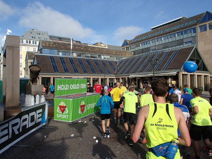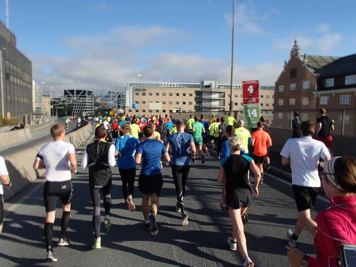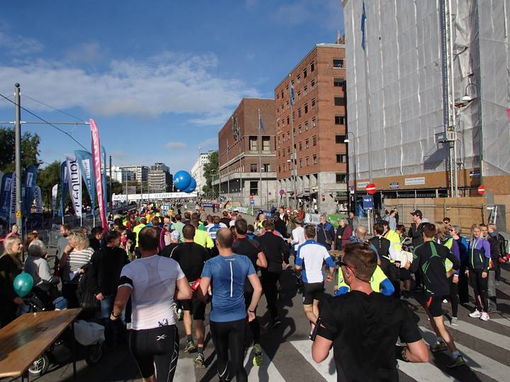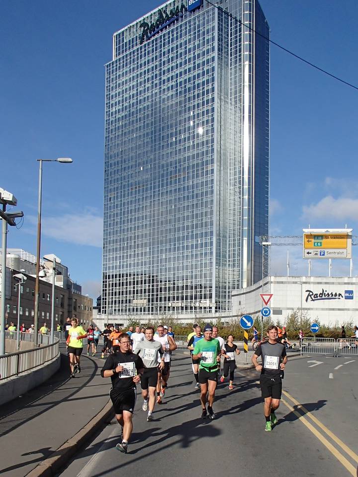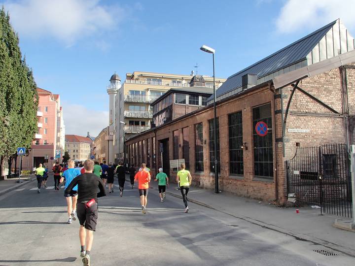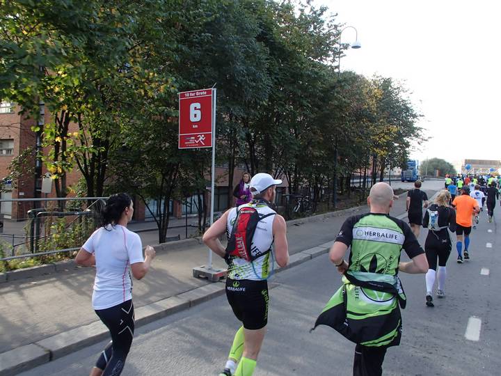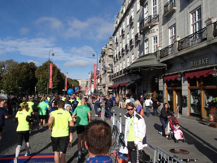 Tøyengata 10.10 Uhr / Km 5,1 Auf der Strecke gab es 13 Verpflegungsstellen, die ab und an etwas große Lücken ließen. Insgesamt kann man sich aber nicht beschweren. |