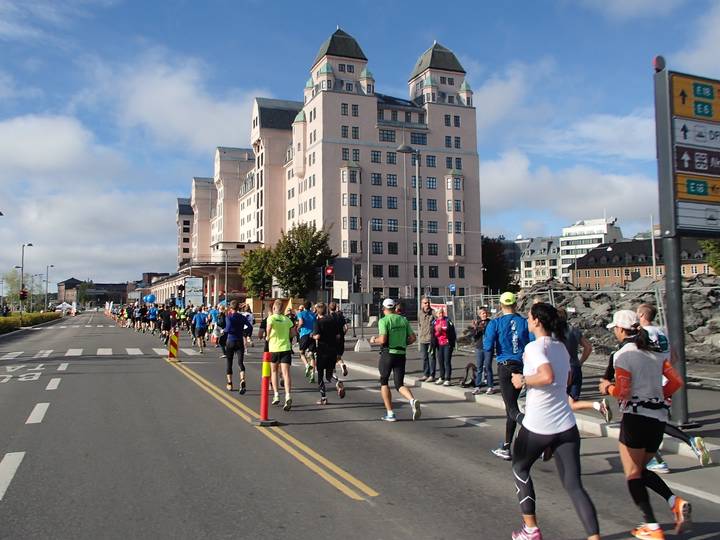 Rådhusgata 10.37 Uhr / Km 10,0 53:56 Minuten brauchte ich für die ersten 10 Kilometer. Das war schnell für mich. Aber bei so einem mit Schauwerten vollgepackten Kurs kommt man ja auch nicht dazu, sich mal auf sein Tempo zu konzentrieren. |