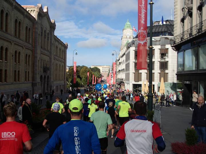 Rådhusgata 10.36 Uhr / Km 9,9 Und damit war die erste von vier Schleifen beendet. |