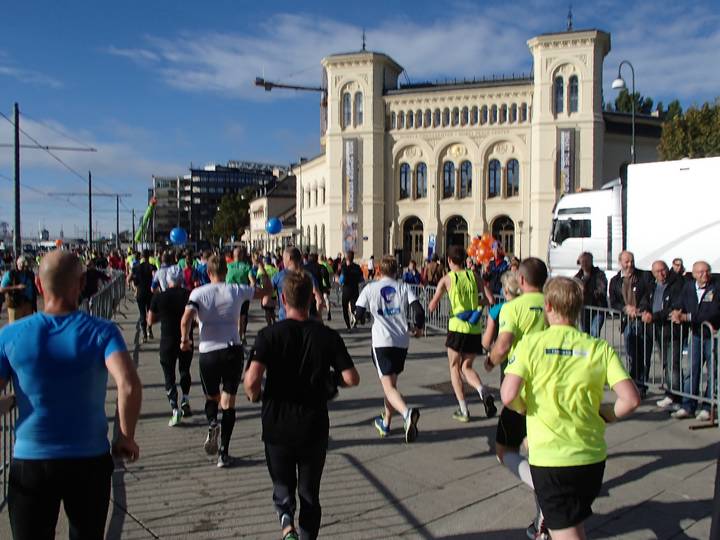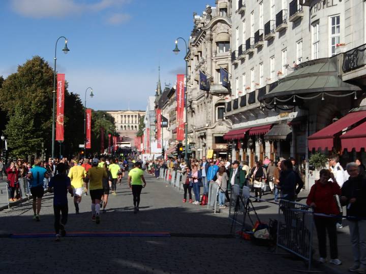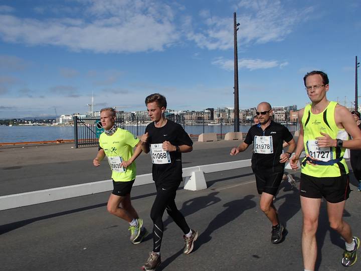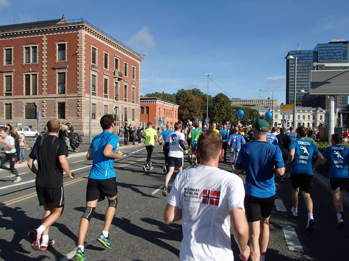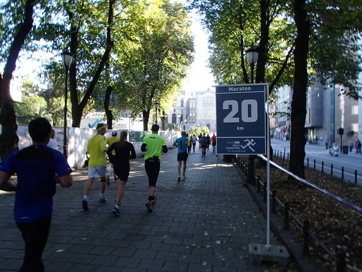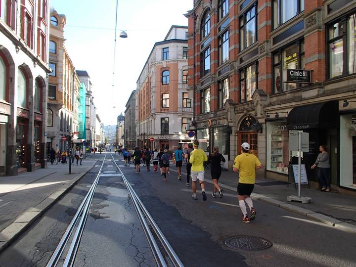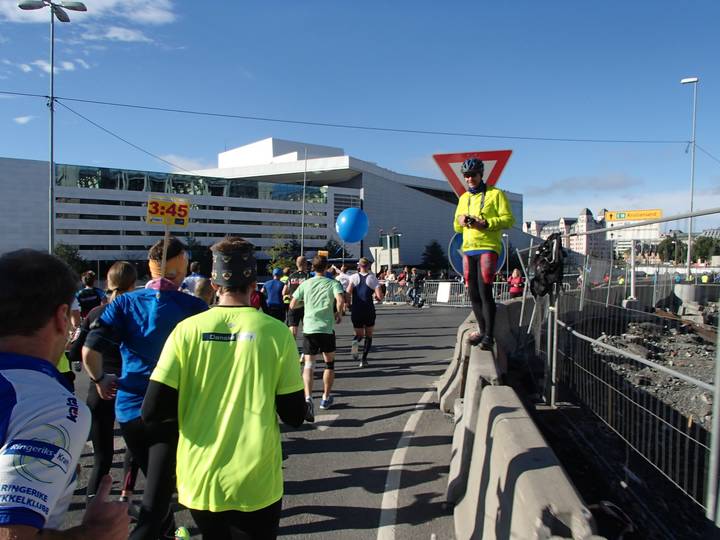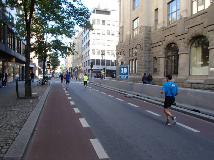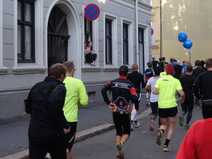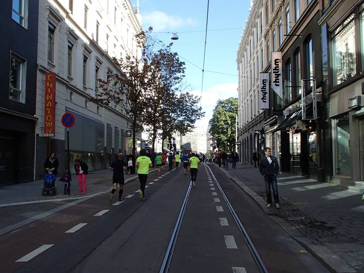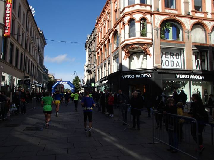 Grev Wedels Plass / Skippergata 11.22 Uhr / Km 18,6 Und schau mal einer an, wer mir da auf dem Weg nach vorne gefolgt war (weißes Shirt, pinke Schue). Das war mal eine nette Begleitung. |
