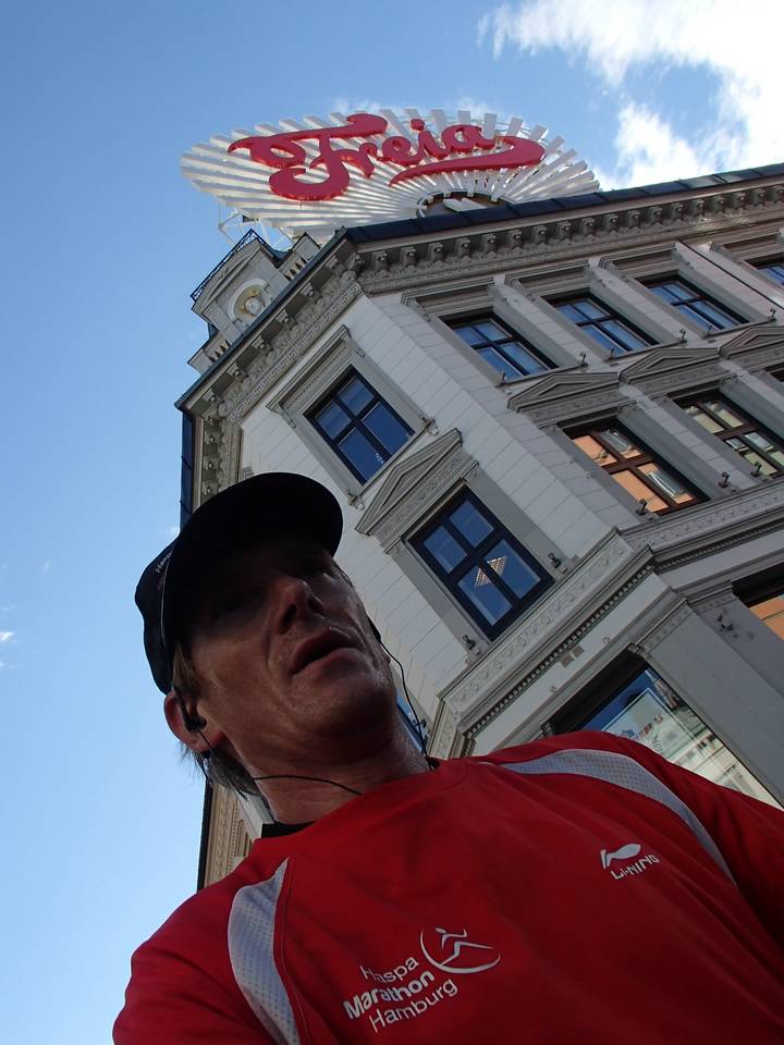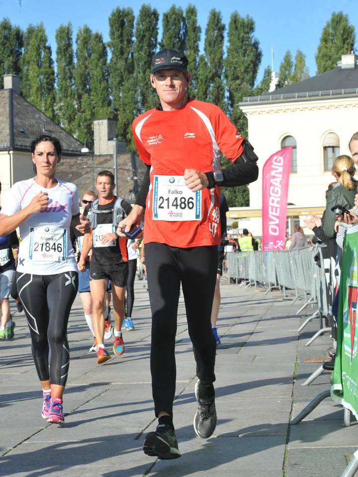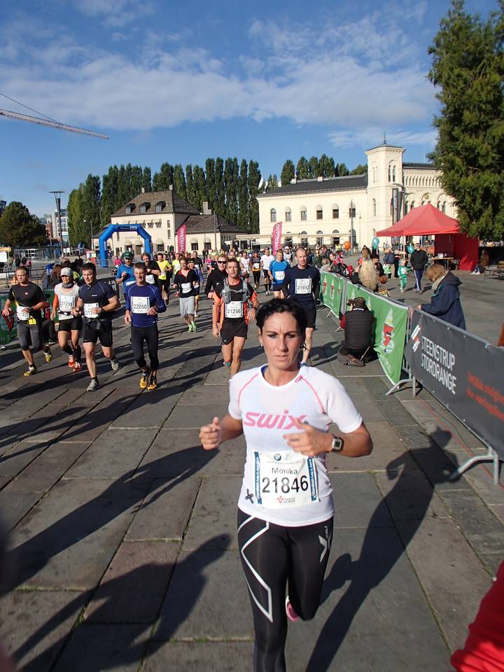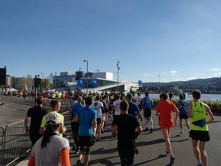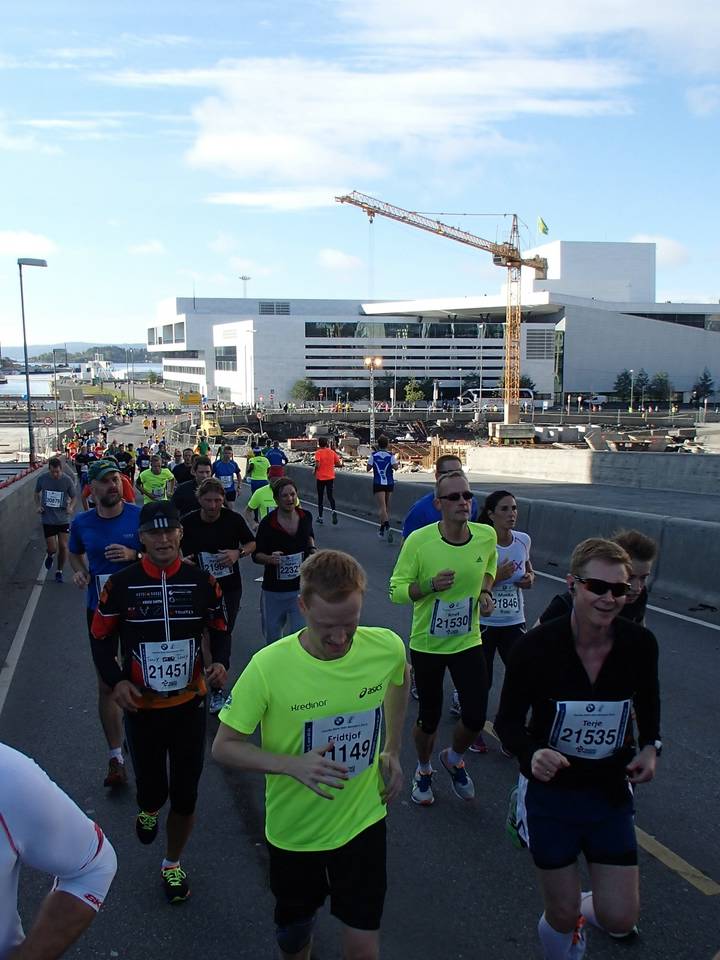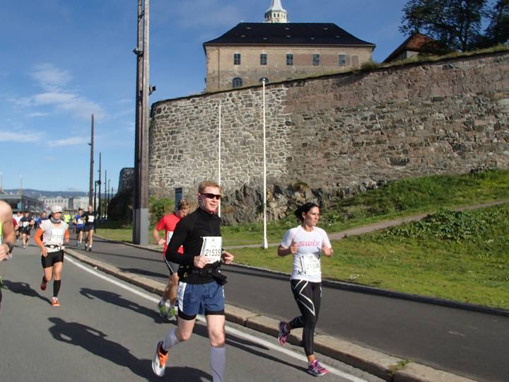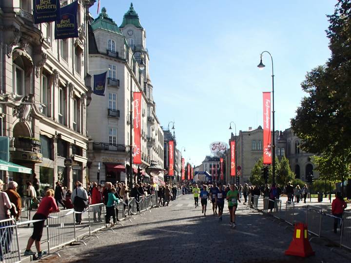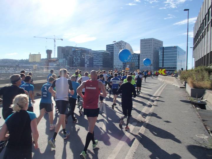 Grev Wedels Plass / Skippergata 11.22 Uhr / Km 18,6 Und schau mal einer an, wer mir da auf dem Weg nach vorne gefolgt war (weißes Shirt, pinke Schue). Das war mal eine nette Begleitung. |