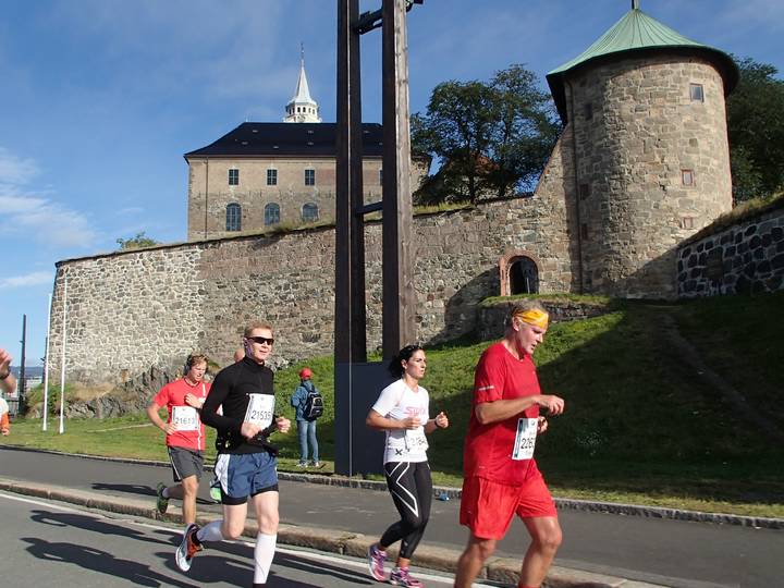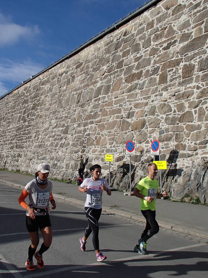 Akershusstranda 10.42 Uhr / Km 10,9 Auch die hohen Mauern der Akershus Festning geben immer wieder ein schönes Fotomotiv ab. |