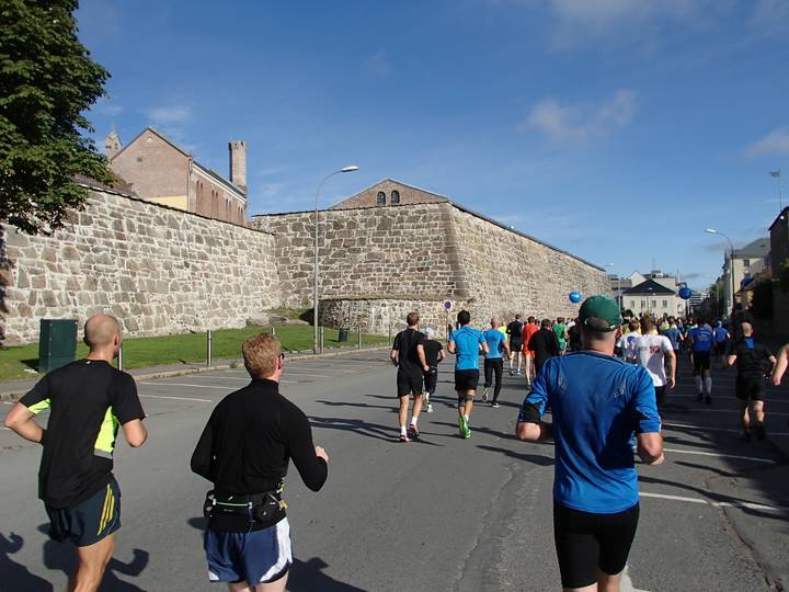 Kongens gate 10.44 Uhr / Km 11,5 Nach der Spitzekehre mit den tückischen Pfützen ging es auf der Ostseite der Festung weiter. |