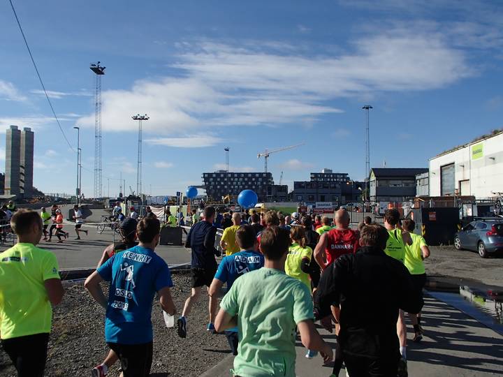 Rådhusplassen 10.37 Uhr / Km 10,0 Und los ging es in die zweite Schleife. Die ist nahezu identisch zur ersten, macht aber noch einen Bogen um den Botanischen Garten und kommt somit auf 11,1 statt 10 Km. |