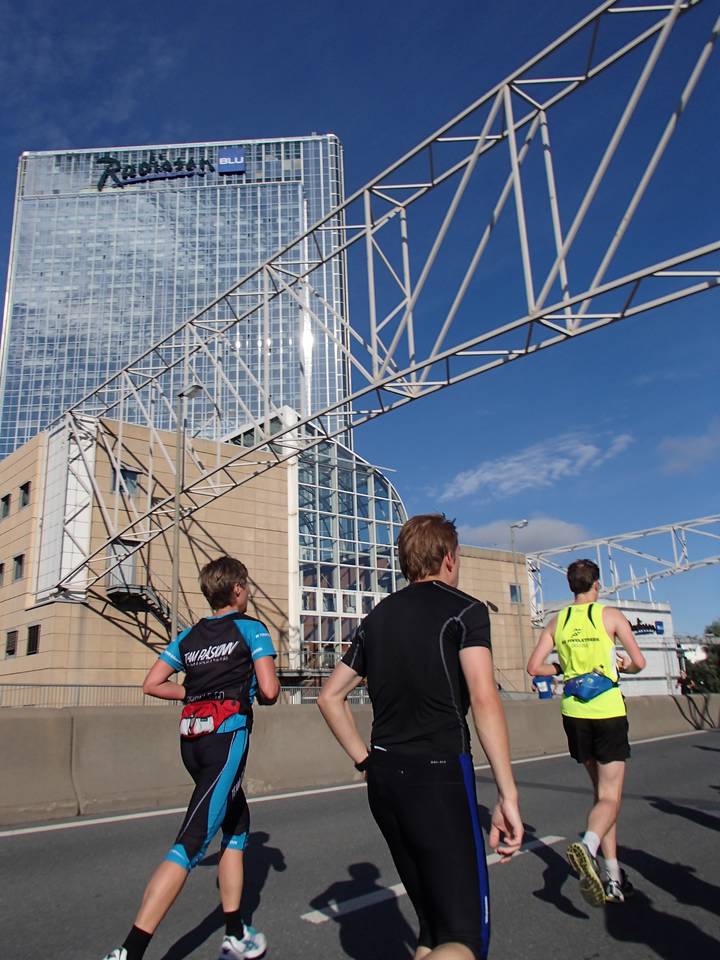 Akershusstranda 10.42 Uhr / Km 11,0 Im Hintergrund zu sehen das Panorama des Hafens von Oslo. |