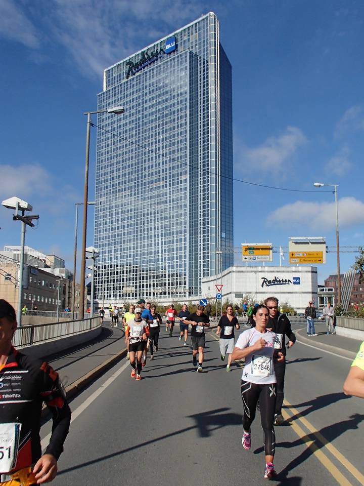 Rådhusgata 11.34 Uhr / Km 20,9 Schön bergab auf das Osloer Rathaus zu. Ein toller Blick. |