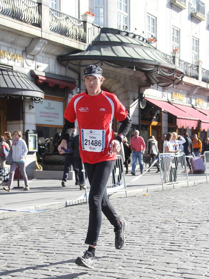Rådhusgata / Chiristiania Torv 11.33 Uhr / Km 20,8 Frisch gestärkt ging es auf die letzten Meter Richtung Start und Ziel. Foto: |