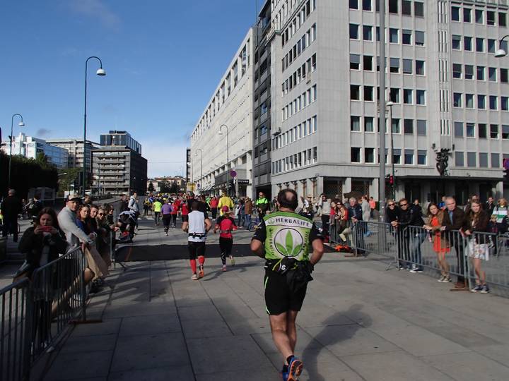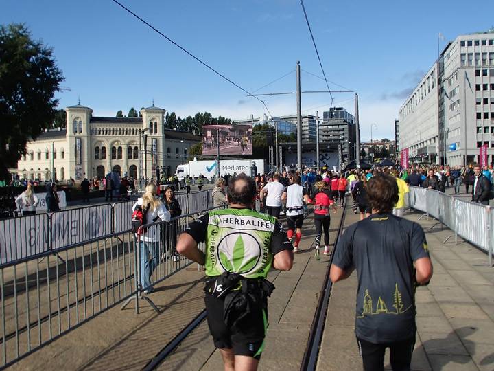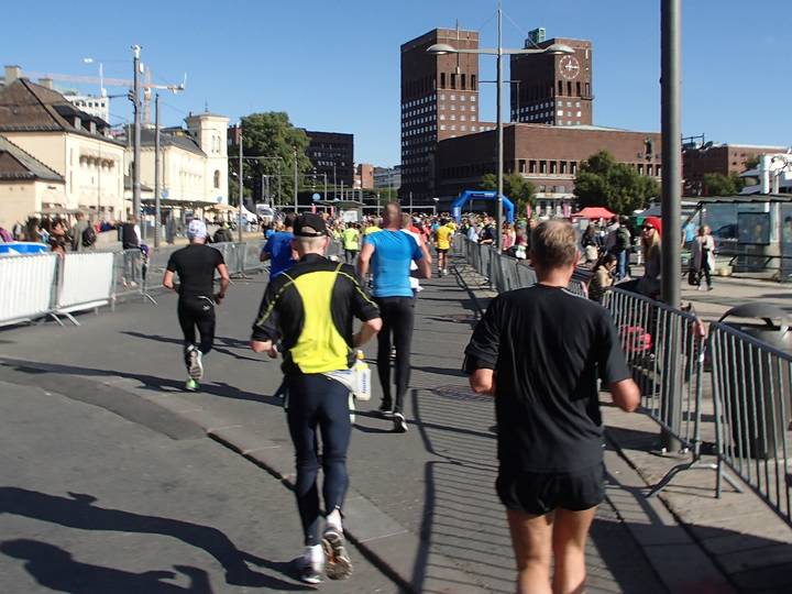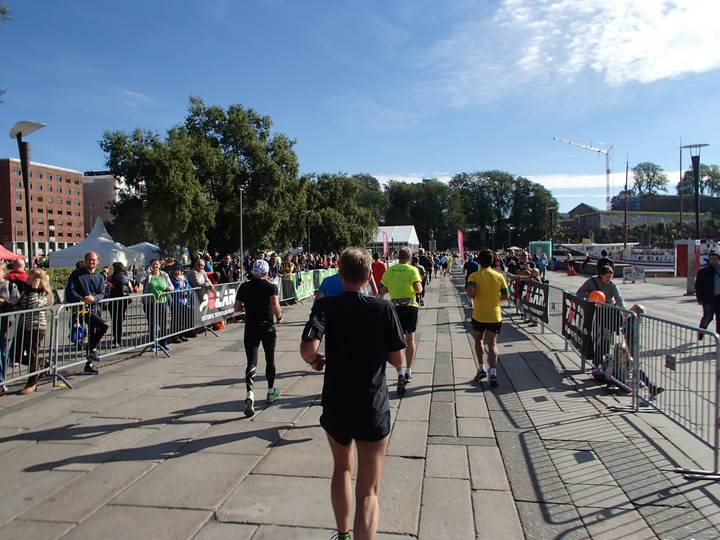 Rådhusplassen 12.17 Uhr / Km 28,8 Hier ging es für uns nun zum dritten Male entlang. In den ersten beiden Schleifen kamen wir direkt von Start und Ziel hierher, diesmal war der Weg etwas länger. |