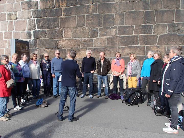 Ruseløkkveien 11.38 Uhr / Km 21,6 Ein Chor. Nett. Aber leider gerade still, als ich da vorbei lief. |