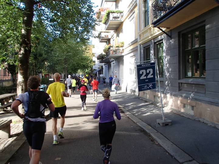 Frognerstranda 12.04 Uhr / Km 26,5 Noch hielt ich mein Tempo so einigermaßen bei und von den 3:45-Stunden-Ballons war auch noch nichts zu sehen. |