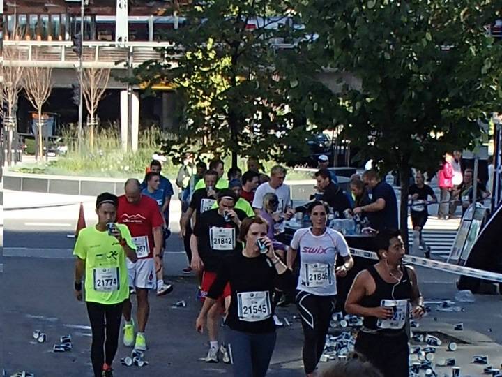 Filipstadveien 12.10 Uhr / Km 27,5 Und wie sollte ich diesen Geschmack nun wieder los werden? Dieser Ali-Stand war zwar kein offizieller Verpflegungsstand, aber war demnächst wieder mit etwas zu rechnen? Mein Magen reagierte derweil mit Brechreiz. Manchmal sollte man eben auch beim Marathon noch mitdenken und nicht alles einfach trinken. |