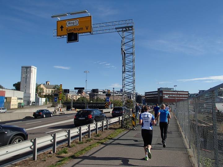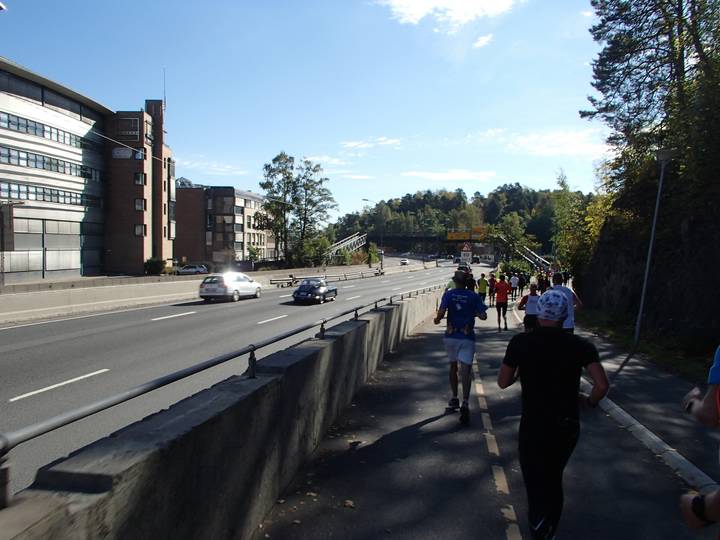 Drammensveien 11.46 Uhr / Km 23,1 Ein stetes auf und ab war es nun. Es gab keine extreme Steigungen, aber immer wieder so leichte Wellen, die einem den Rhythmus störten und so nach über zwei Stunden natürlich in den Beinen schmerzten. |