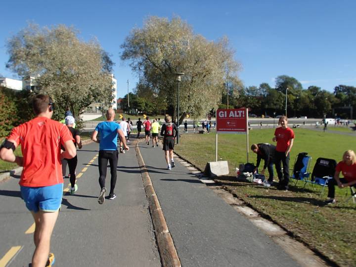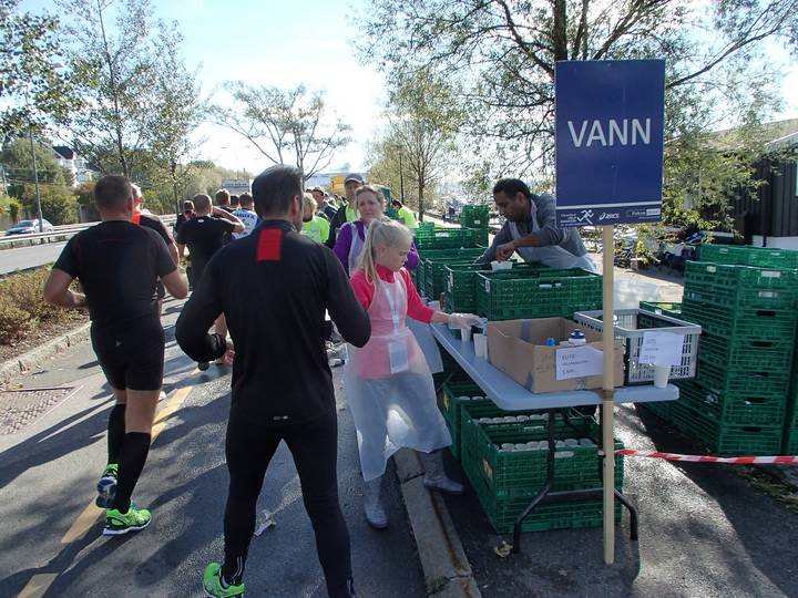 Frognerstranda 12.03 Uhr / Km 26,3 Nachdem ja eben bei Km 24,9 ein Verpflegungsstand aufgebaut kam dieser recht früh. Aber ich hatte ja schon erwähnt, daß die Verteilung nicht ganz optimal war. |