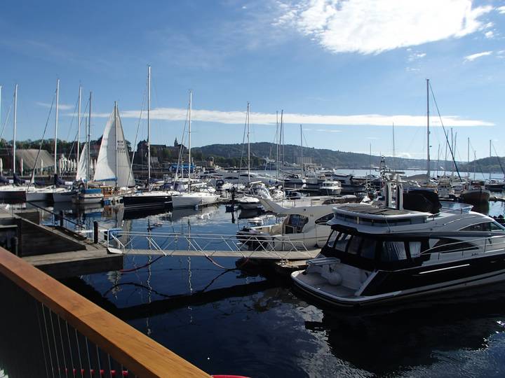 Frognerstranda 12.00 Uhr / Km 25,7 Aber für Museen hatte ich gerade keine Muse, denn ich wollte ja noch diesen Marathon beenden. Und das gestaltete sich trotz der schönen Sicht auf diesen Bootshafen mehr und mehr schwierig. |