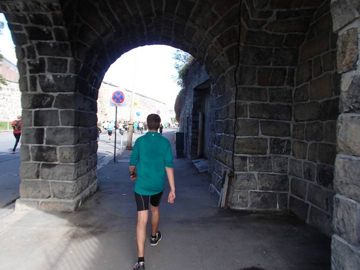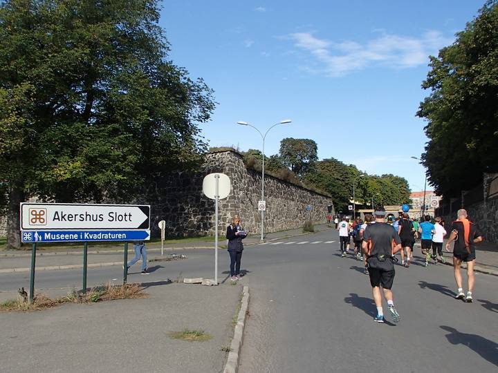 Kongens gate 12.23 Uhr / Km 29,9 Nun ging es aber erst einmal an der Akershus Festning entlang und die war auch beim dritten Vorbeilauf immer noch sehenswert. |