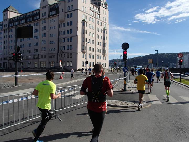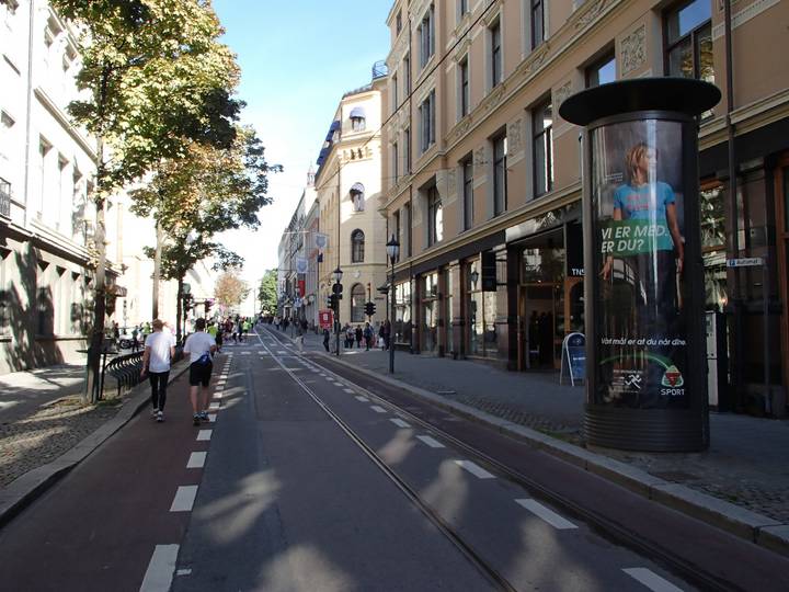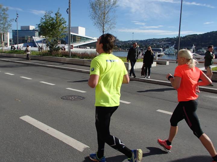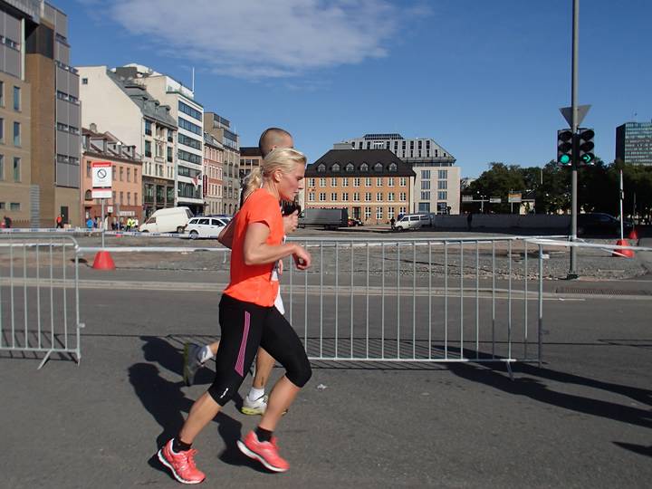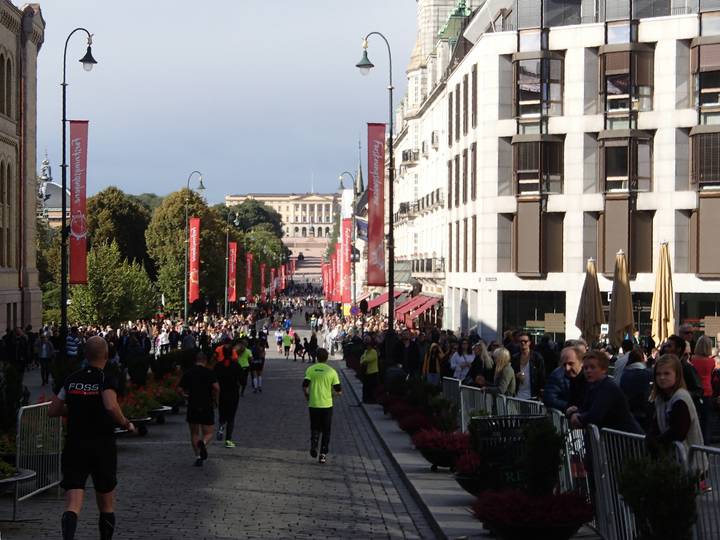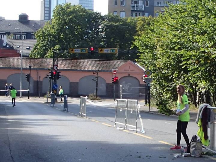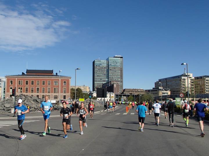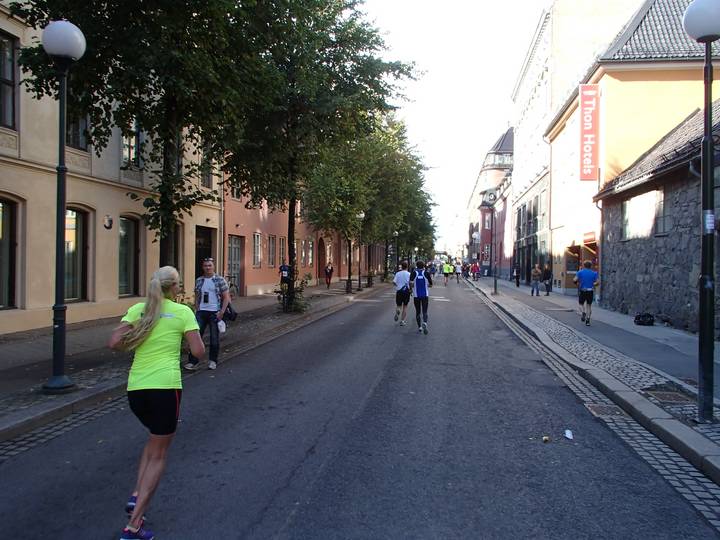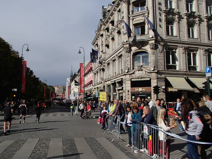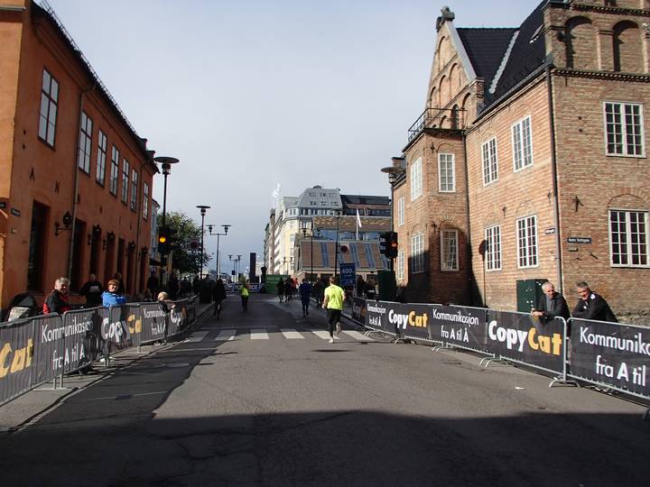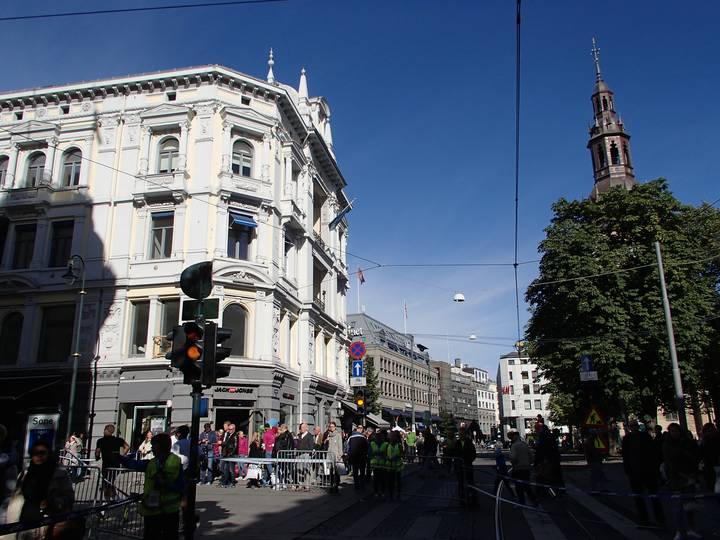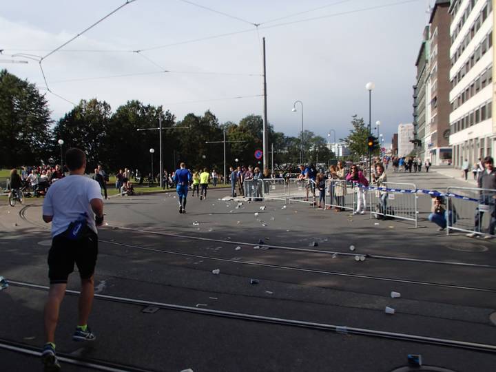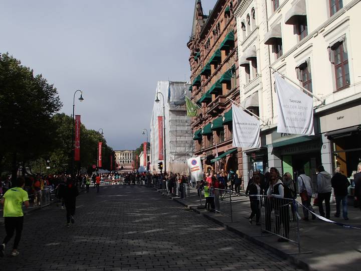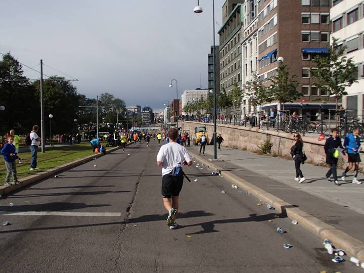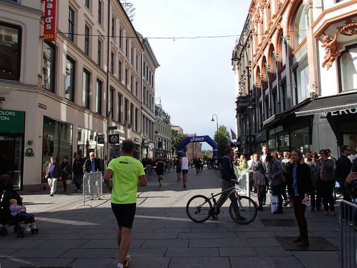 Rådhusgata 13.31 Uhr / Km 42,1 Da hatten die Helfen aber einiges zu tun, die Strecke für den Marathon frei zu halten. |