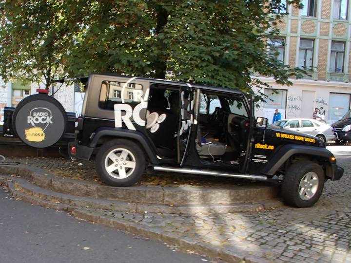 Tøyengata 12.58 Uhr / Km 36,2 Ein ganzer Jeep als Musik-Anlage. Prima Idee. Und irre laut. |