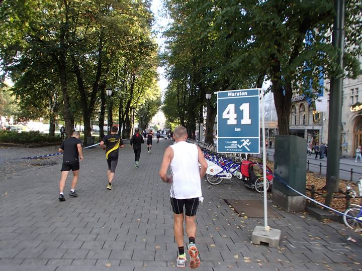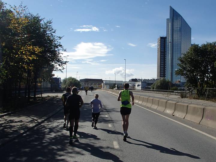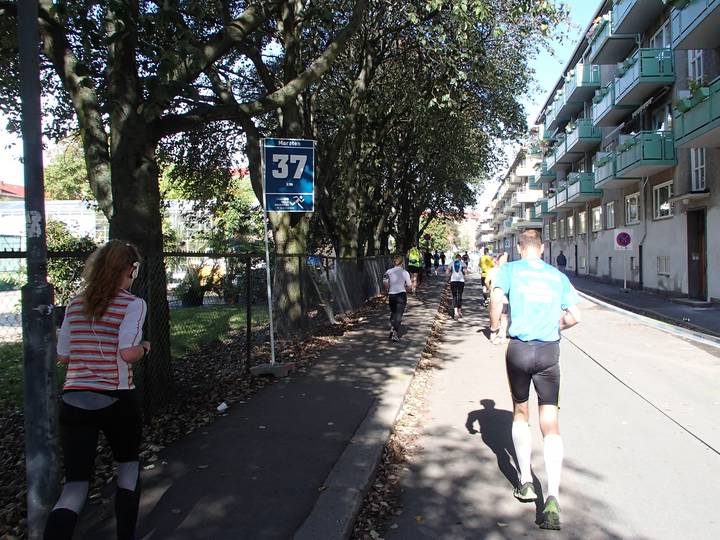 Tøyenbekken 12.55 Uhr / Km 35,6 Meine Schwächephase hatte ich zumindest überwunden und lief nun wieder locker über den Kurs. Nun kam das Ziel ja auch immer näher. |