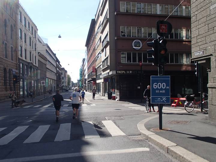 Kongens gate 13.28 Uhr / Km 41,6 Nur noch 600 Meter bis ins Ziel. Hier war ich auch schon zweimal zuvor gewesen, aber diesmal galt das Schild. |