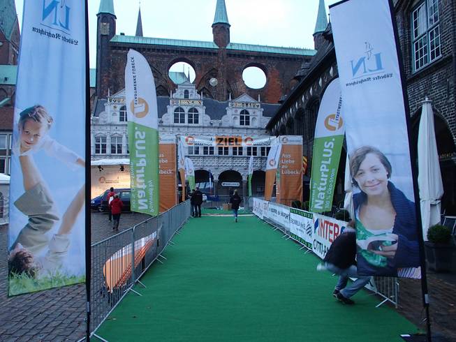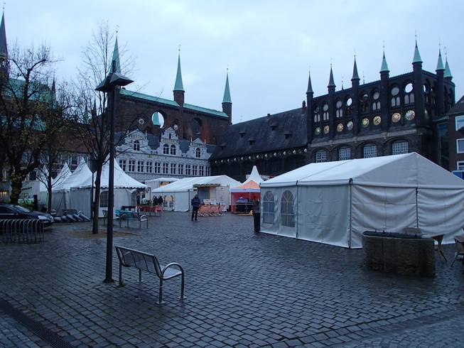 Markt, Lübeck 8.14 Uhr Das Ziel war schon einmal aufgebaut. |