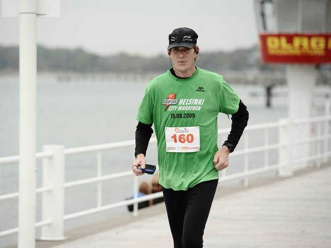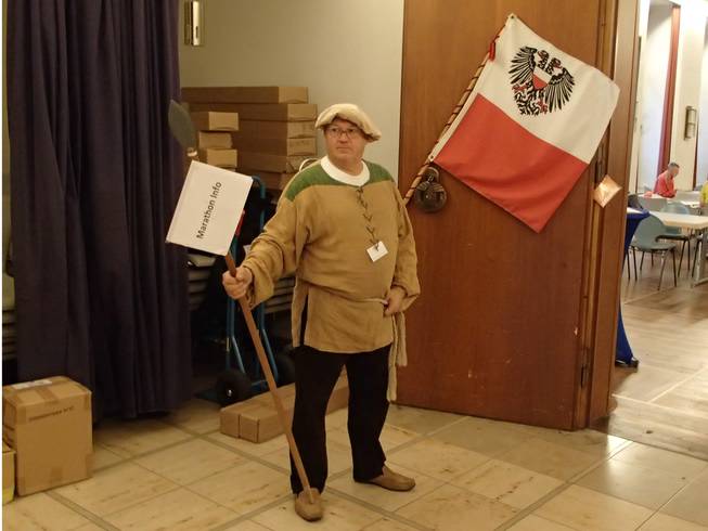 Börsensaal, Lübeck 8.18 Uhr Seine Marathon-Infos waren aktueller als der schicke Anzug. |