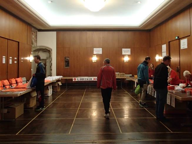 Börsensaal, Lübeck 8.19 Uhr Startunterlagen gab es fix und schnell. Gab ja auch keine Warteschlange. |