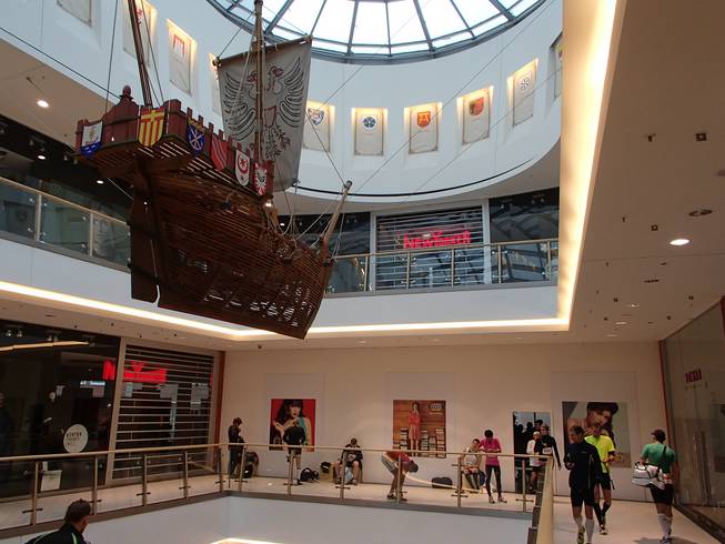 Haerder-Center 14.11 Uhr Wieso hatte man die schöne Dekoration eigentlich ins Untergeschoß verbannt? Das Haerder-Center war ein prima Platz zum Umziehen. Schön warm, kein Wind, kaum Leute und die Toiletten gleich um die Ecke. Und es war immer noch kaum wer da. |