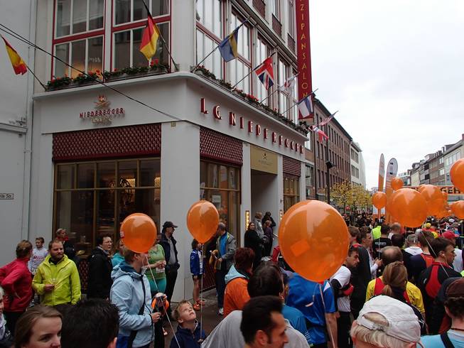 Vorderreihe 11.54 Uhr / Km 19,6 Weiter dann durch die Fußgängerzone. |