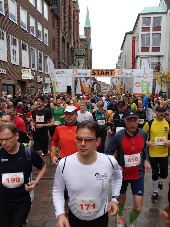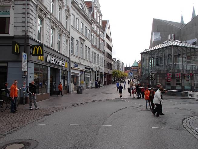 Breite Straße 10.02 Uhr Mit leichter Verspätung dann der Start zum Lübeck-Marathon. |