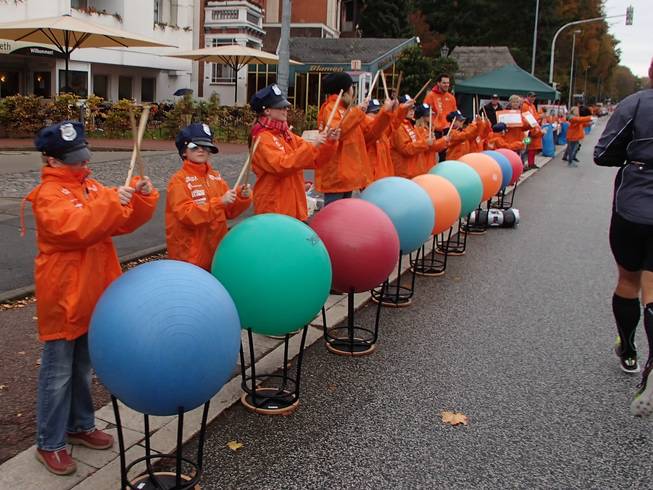 Travemünder Allee 10.22 Uhr / Km 3,5 Gymnastik-Ball-Trommeln. Das klang recht flott. |