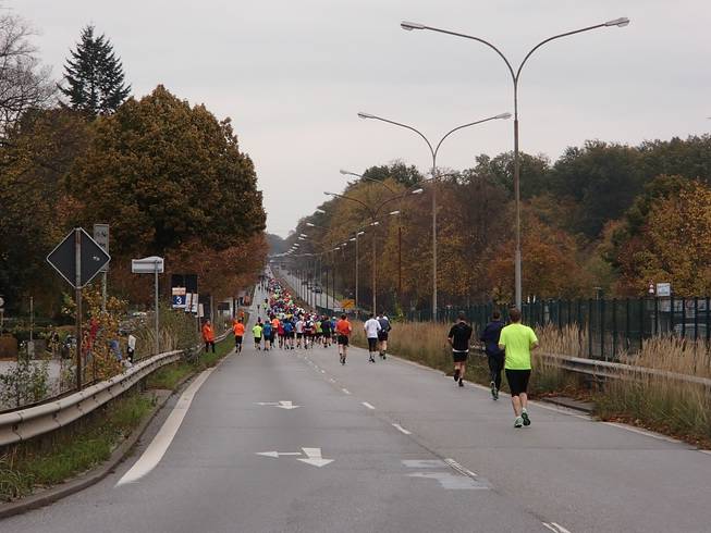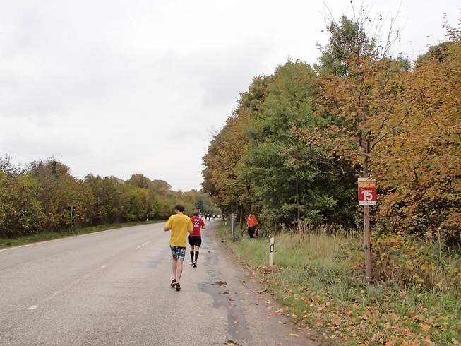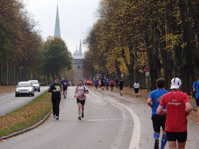 Travemünder Landstraße 11.12 Uhr / Km 12,3 Wieder eine lange Gerade, aber in Gegensatz zur Travemünder Allee früher war es hier doch recht hübsch. |