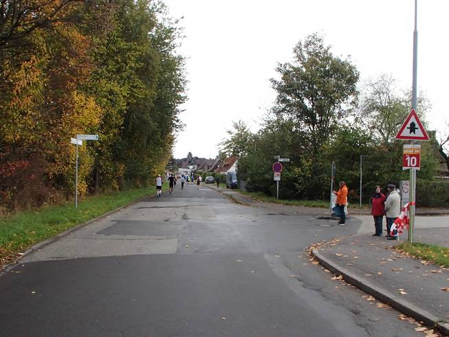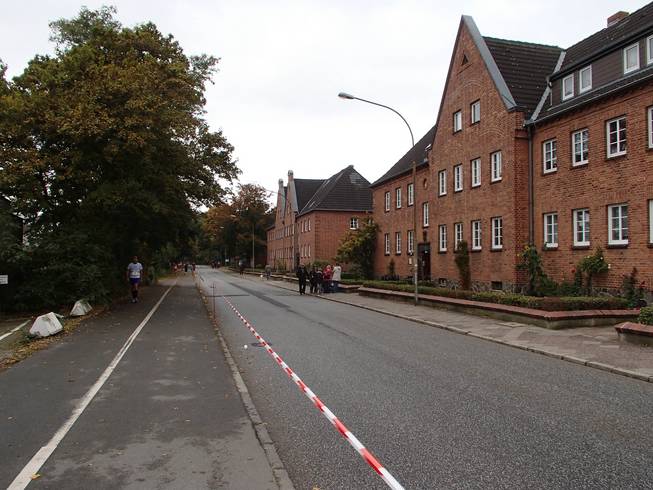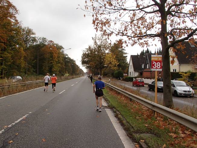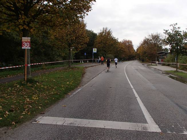 Travemünder Allee 10.44 Uhr / Km 7,5 Was allerdings bedeutete, daß wir auf der anderen Seite wieder an der selben Straße landeten. |