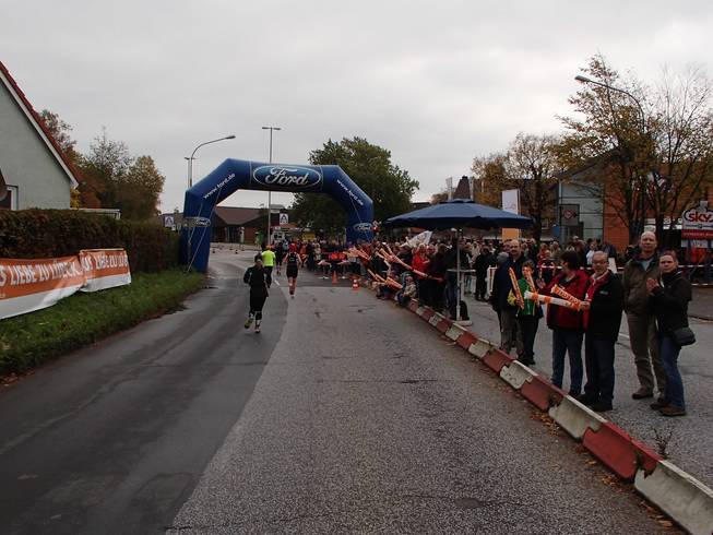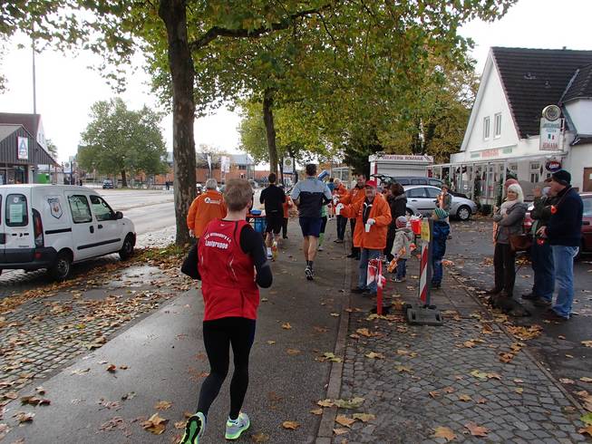 Solmitzstraße 11.09 Uhr / Km 11,8 Hier in Kücknitz war prima Stimmung. Hier war später der Wendepunkt für die Halbmarathon-Läufer. |