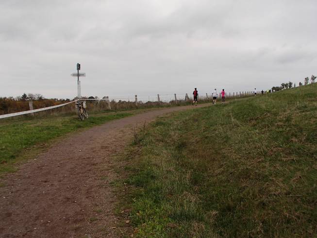 Am Leuchtenfeld 12.14 Uhr / Km 23,2 Nun ging es zwar gegen den Wind, aber ich legte etwas an Tempo zu. Jedenfalls fühlte es sich so an. Da war ich auf dem Hinweg ja auch drauf reingefallen. |