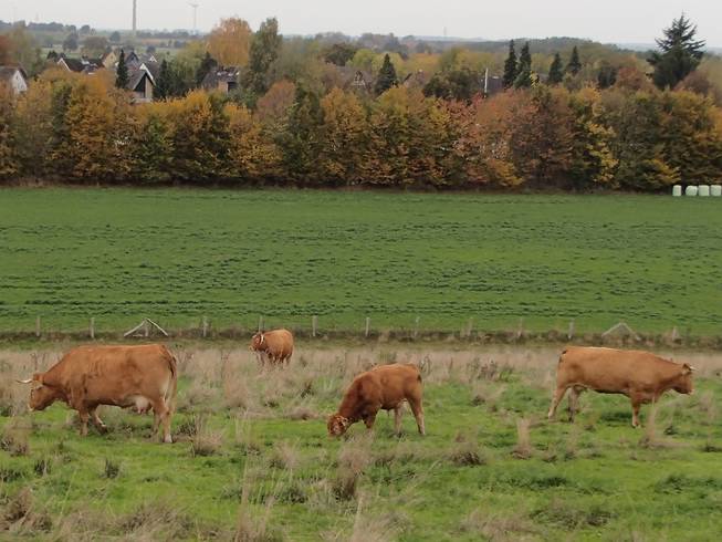 Ivendorf 11.36 Uhr / Km 16,3 Die Kühe ließen sich nicht stören. Wir liefen ja schon längst nur noch vereinzelt und nicht mehr in Masse. |