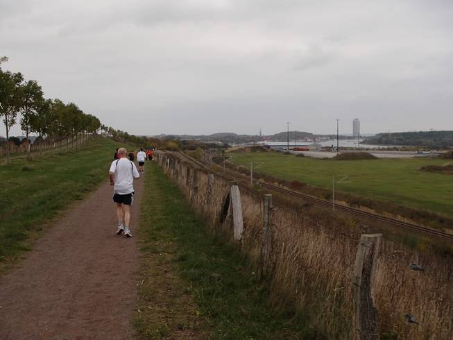 Travemünder Landstraße 11.22 Uhr / Km 13,8 Bei der Pinkelpause dann die ultimative Katastrophe. Das Band der Hose riß und nun ging sie nicht mehr zu. Da sie alleine nicht hält (ich hätte also auch gleich in Unterhose weiterlaufen können) hatte ich nun ein Problem. Es dauerte eine gefühlte Ewigkeit, bis ich die Hose wieder zu hatte. |