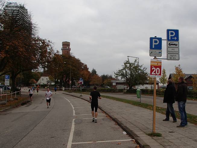 Trelleborgallee 11.56 Uhr / Km 20,0 Die vierten Kilometer in 28:08 Minuten. Mir kam das viel schneller vor. Aber das war es offenbar nicht. 1:53:34 Minuten auf der Uhr. |