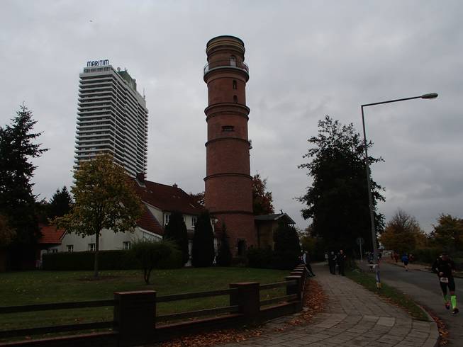 Trelleborgallee / Am Leuchtenfeld 11.57 Uhr / Km 20,1 Der alte Travemünder Leuchtturm. 31 Meter hoch und aus dem Jahre 1539 (nach einem Brand 1827 umgeformt). Er ist damit der älteste Leuchtturm an der Deutschen Ostseeküste. |