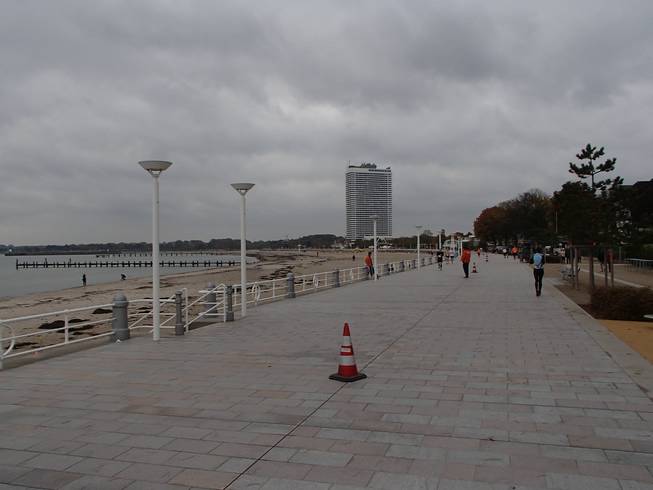 Strandpromenade 12.04 Uhr / Km 21,3 Auch der Blick auf das trübe Wasser munterte nicht wirklich auf. |