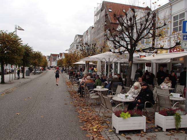 Strandpromenade 12.06 Uhr / Km 21,7 Dann die Wende. Der Weg zurück zum Lübecker Markt war etwas kürzer, weil es auf dem Rückweg nicht um das Holstertor ging. |