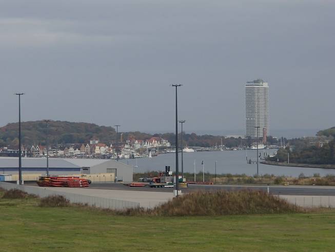 Ivendorf 11.37 Uhr / Km 16,4 Vom Deich aus (endlich oben angekommen) konnte man schon bis Travemünde schauen. Bei dem Hochhaus (Maritim Strandhotel) war die Ostseepromenade. |