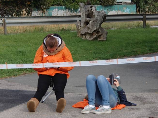 An der Kehre / Kieselgrund 13.04 Uhr / Km 32,3 Ach ja... man könnte auch ein Buch lesen (rechts). Das gab es auch schon vor den Handys. |