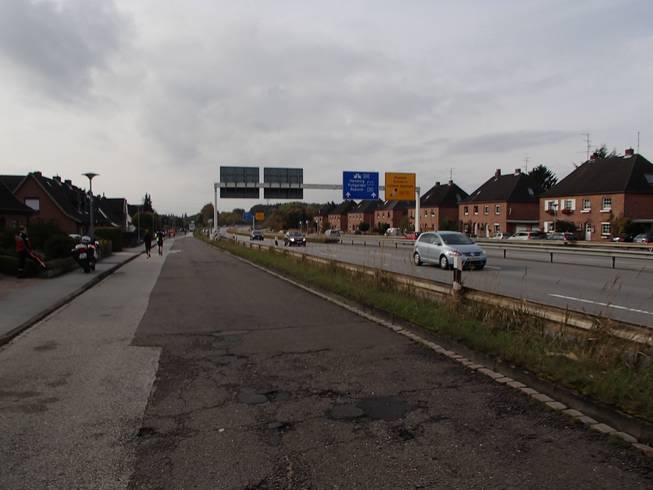 Travemünder Allee 10.20 Uhr / Km 3,2 Und nach dem schönen Sightseeing-Programm zu Beginn hatten wir die Ausfallstraße erreicht. |