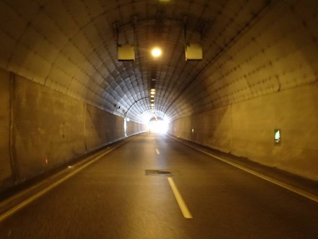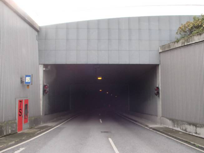 Travemünder Landstraße / Herrentunnel 13.18 Uhr / Km 34,8 Meine Arbeitskollegin sagte immer: "Bedenke, das Licht am Ende des Tunnels könnte auch ein entgegenkommender Zug sein." |