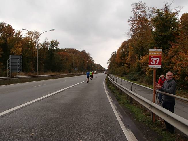 Travemünder Landstraße 13.36 Uhr / Km 38,0 Ich war immer noch gut im Tempo und die Zeiten deuteten inzwischen klar auf eine Zeit unter vier Stunden hin. |